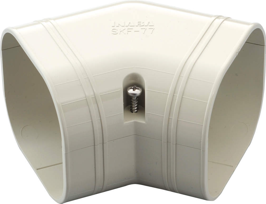 Ontdek de veelzijdige Inaba Denko SKF-100-I platte bocht 45° - ivoor. Ideaal voor het verbinden van kabelgoten en het creëren van een hoek van 45 graden. Gemaakt van duurzaam PVC, biedt deze bocht stevigheid en UV-bestendigheid, geschikt voor binnen- en buitentoepassingen.